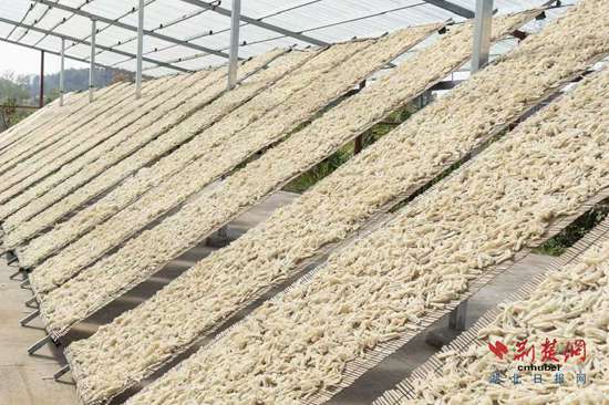 而這樣的環(huán)境催生了“豆絲”這一鄂州傳統(tǒng)美食。除了大米外,綠豆、黃豆、葛根等“豆絲”原材料生長(zhǎng)在山溝、溪邊、林中。“每年入冬,幾乎家家起大灶開(kāi)始制作豆絲,風(fēng)干后可以留存整個(gè)冬天?!敝軛罱榻B。