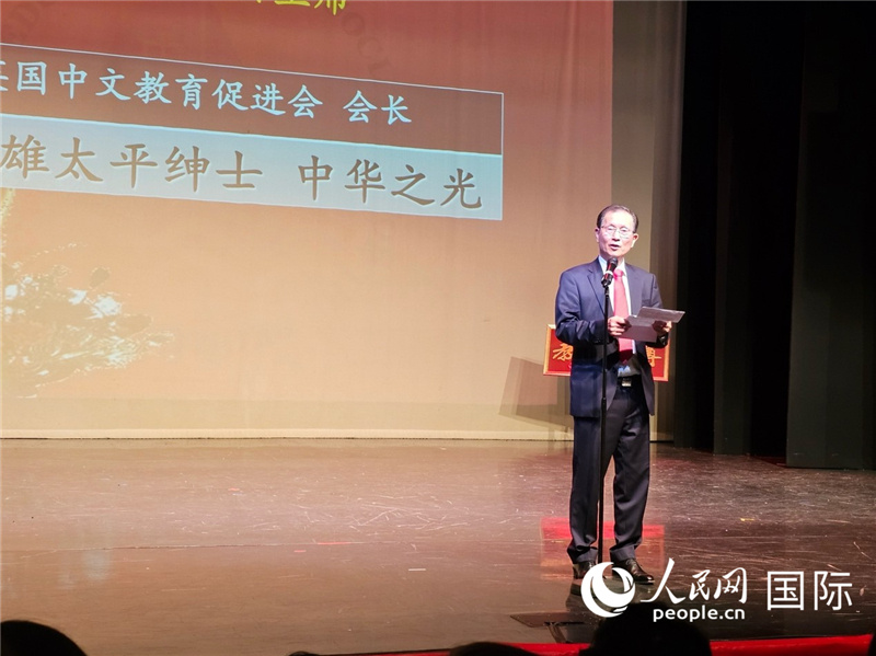 英國中文教育促進(jìn)會會長伍善雄發(fā)表致辭。人民網(wǎng) 徐量攝