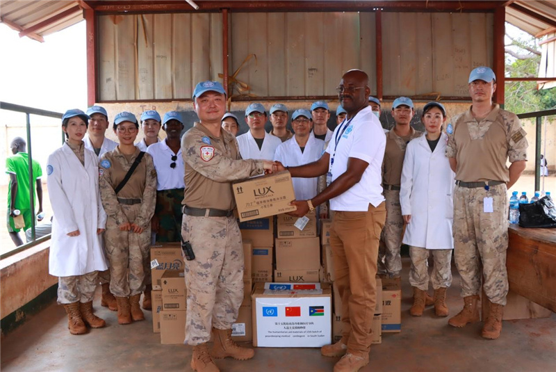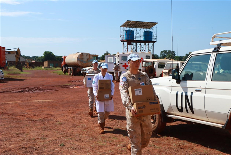 中國(guó)維和醫(yī)療分隊(duì)向當(dāng)?shù)鼐栀?zèng)醫(yī)療物資。魯振輝攝
