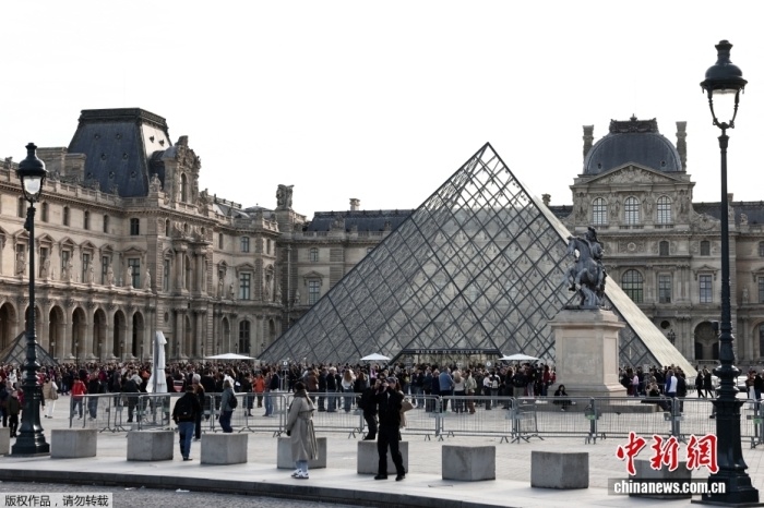 當(dāng)?shù)貢r間10月22日,在經(jīng)歷了搶劫事件三天后,法國盧浮宮重新開門,供游客參觀。圖為游客在盧浮宮外排隊。