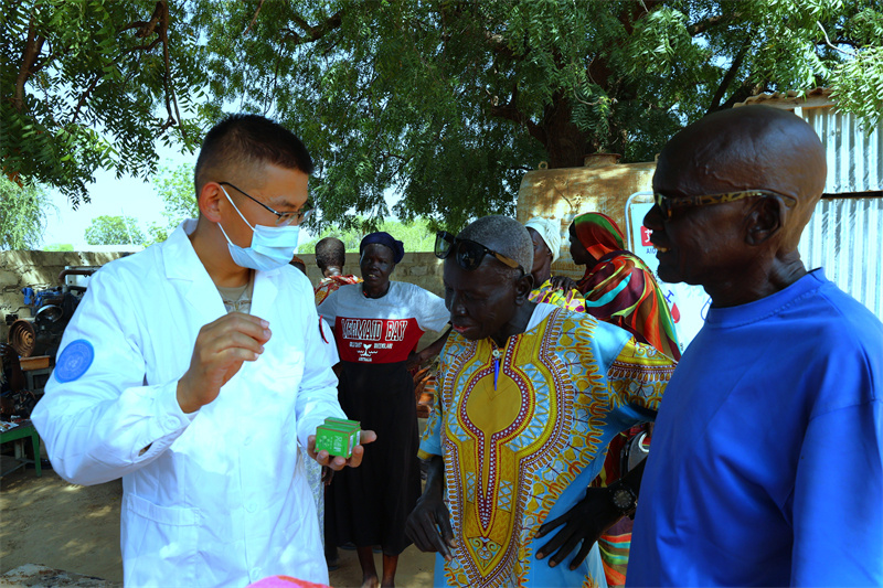 現(xiàn)場,我維和部隊醫(yī)護人員為當?shù)孛癖娞峁z查、診療和健康咨詢,發(fā)放針對感冒、蚊蟲咬傷、跌打損傷等13類4600余件常用藥品,發(fā)放宣傳手冊普及傳染疾病防護知識,并為醫(yī)院更換、補充常用藥品和醫(yī)療耗材。