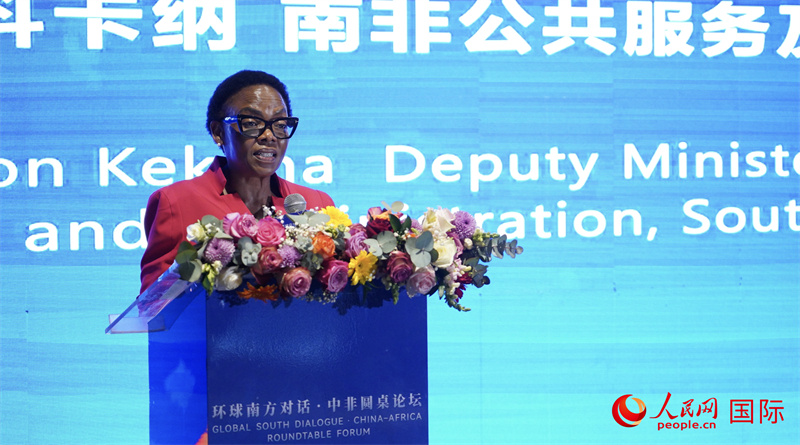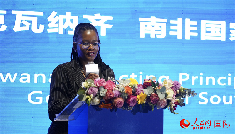 南非公共服務及管理部副部長平基·莎倫·科卡納發(fā)表主旨發(fā)言。 人民網(wǎng) 劉暢攝