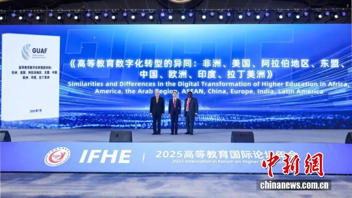 11月9日杭州2025高等教育國際論壇開幕式上,中國高等教育學會與歐洲大學協(xié)會、美國教育委員會等8大國際教育組織聯合撰寫的《高等教育數字化轉型的異同》研究報告進行了展示。(主辦方供圖)