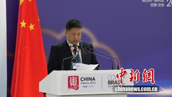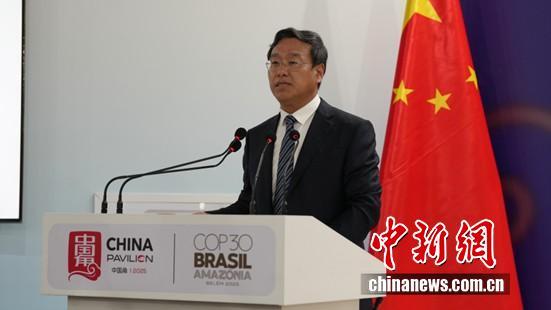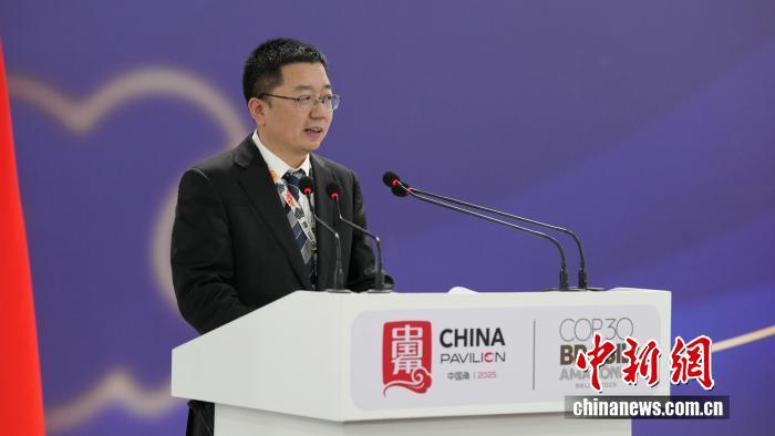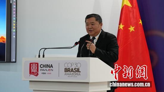 圖為COP30中國代表團(tuán)團(tuán)長 生態(tài)環(huán)境部副部長李高主持邊會(huì)致辭環(huán)節(jié)。中國新聞網(wǎng)記者 林勐男 攝