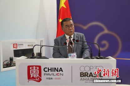 圖為中國氣候變化事務(wù)特使劉振民發(fā)表致辭。中國新聞網(wǎng)記者 林勐男 攝