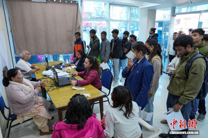 當(dāng)?shù)貢r(shí)間11月11日,尼泊爾加德滿都,民眾在加德滿都地區(qū)選舉辦公室注冊(cè)選民信息。中新社記者 崔楠 攝