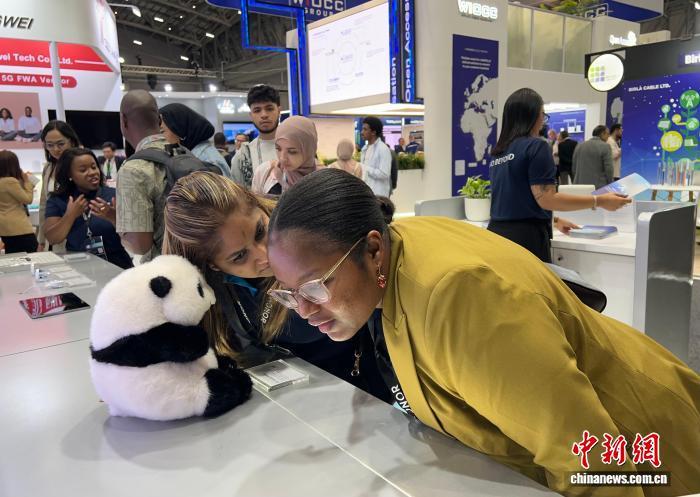 當(dāng)?shù)貢r(shí)間11月11日,第28屆非洲科技節(jié)在南非開普敦開幕。圖為與會(huì)嘉賓在中國(guó)企業(yè)展區(qū)了解接入人工智能系統(tǒng)的毛絨玩具?!≈行律缬浾?孫翔 攝