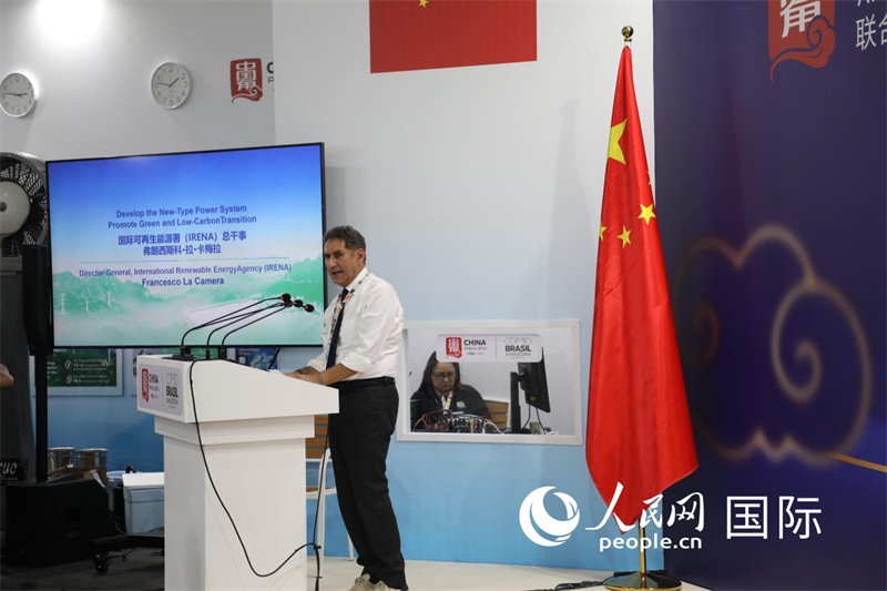 國際可再生能源署總干事卡梅拉致辭。人民網(wǎng)記者 陳一鳴攝