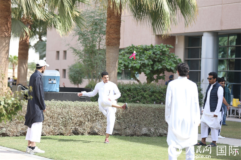 沙特學生在活動現(xiàn)場體驗踢毽子。人民網(wǎng)記者 任皓宇攝