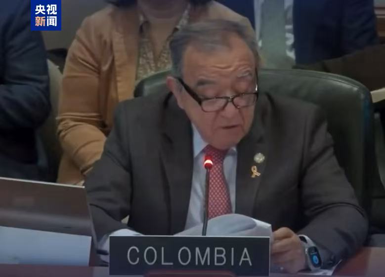 △哥倫比亞常駐美洲國(guó)家組織代表巴爾加斯發(fā)言現(xiàn)場(chǎng)