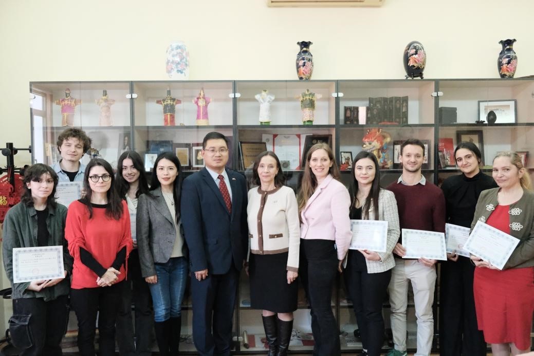 人民網(wǎng)華沙11月25日電 (記者禹麗敏)當(dāng)?shù)貢r(shí)間11月24日下午,首屆中羅文學(xué)作品翻譯大賽頒獎(jiǎng)儀式在布加勒斯特成功舉辦。該比賽由布加勒斯特大學(xué)孔子學(xué)院主辦、中國(guó)駐羅馬尼亞大使館支持。中國(guó)駐羅馬尼亞使館教育事務(wù)專員周國(guó)寧,布加勒斯特大學(xué)孔子學(xué)院羅方院長(zhǎng)白羅米、中方院長(zhǎng)蘇宇以及布加勒斯特大學(xué)外國(guó)語(yǔ)言和文學(xué)學(xué)院教師包心茹、安德出席。獲獎(jiǎng)選手代表、孔院師生和布大中文系學(xué)生40余人參加活動(dòng)。蘇宇主持頒獎(jiǎng)儀式。