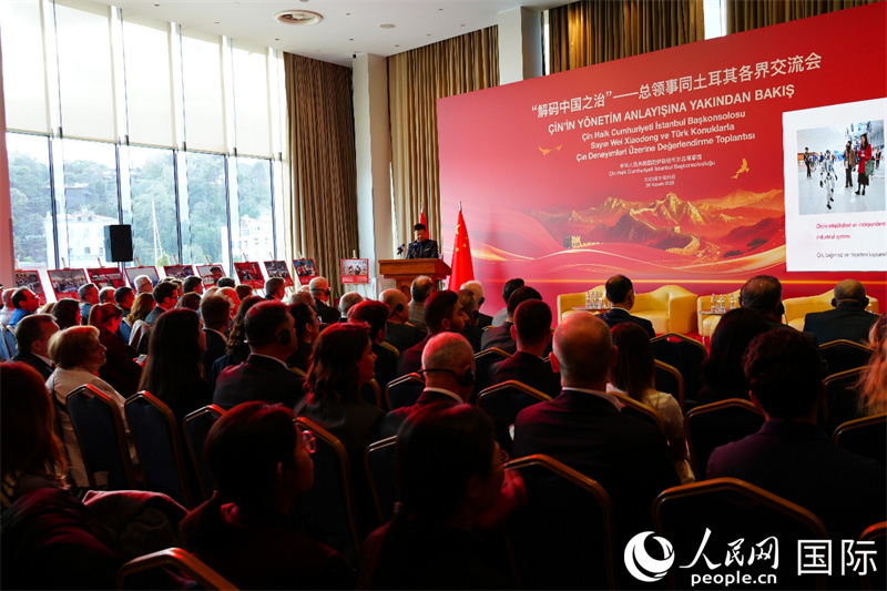 人民網(wǎng)伊斯坦布爾11月27日電 (記者李明)當(dāng)?shù)貢r間11月26日,中國駐伊斯坦布爾總領(lǐng)事館舉辦“解碼中國之治”——總領(lǐng)事同土耳其各界交流會。中國駐伊斯坦布爾總領(lǐng)事魏曉東出席并發(fā)表主旨演講。土工商界、智庫、媒體、高校代表,領(lǐng)區(qū)中資企業(yè)和機構(gòu)負責(zé)人等160余人出席。