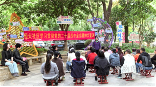 社區(qū)黨委堅(jiān)持把理論武裝擺在首位,著力構(gòu)建立體化宣講矩陣。創(chuàng)新打造“綠洲樹下”“小亭議事”“周三有約”等特色微陣地,充分發(fā)揮“社區(qū)合伙人”中老黨員、退伍老兵、先進(jìn)模范等榜樣力量的核心作用,組建“紅色宣講團(tuán)”。宣講團(tuán)成員化身“草根講師”,走出會(huì)議室,深入綠蔭下、小亭中,以百姓視角、武漢方言、拉家常方式,生動(dòng)解讀二十屆四中全會(huì)精神等理論及最新政策,使黨的聲音更鮮活、更可感。在“潤(rùn)物有聲”的微課堂里,居民圍坐探討、邊聽(tīng)邊議、有問(wèn)有答,實(shí)現(xiàn)了理論學(xué)習(xí)“零距離”、思想傳播“接地氣”。同步開展“治理金點(diǎn)子”征集活動(dòng),引導(dǎo)居民將學(xué)習(xí)成果轉(zhuǎn)化為參與社區(qū)治理的實(shí)際行動(dòng),圍繞公共事務(wù)、環(huán)境整治、鄰里互助等議題積極建言獻(xiàn)策,累計(jì)收集有效建議100余條。
